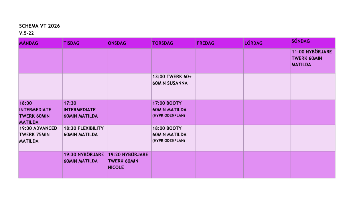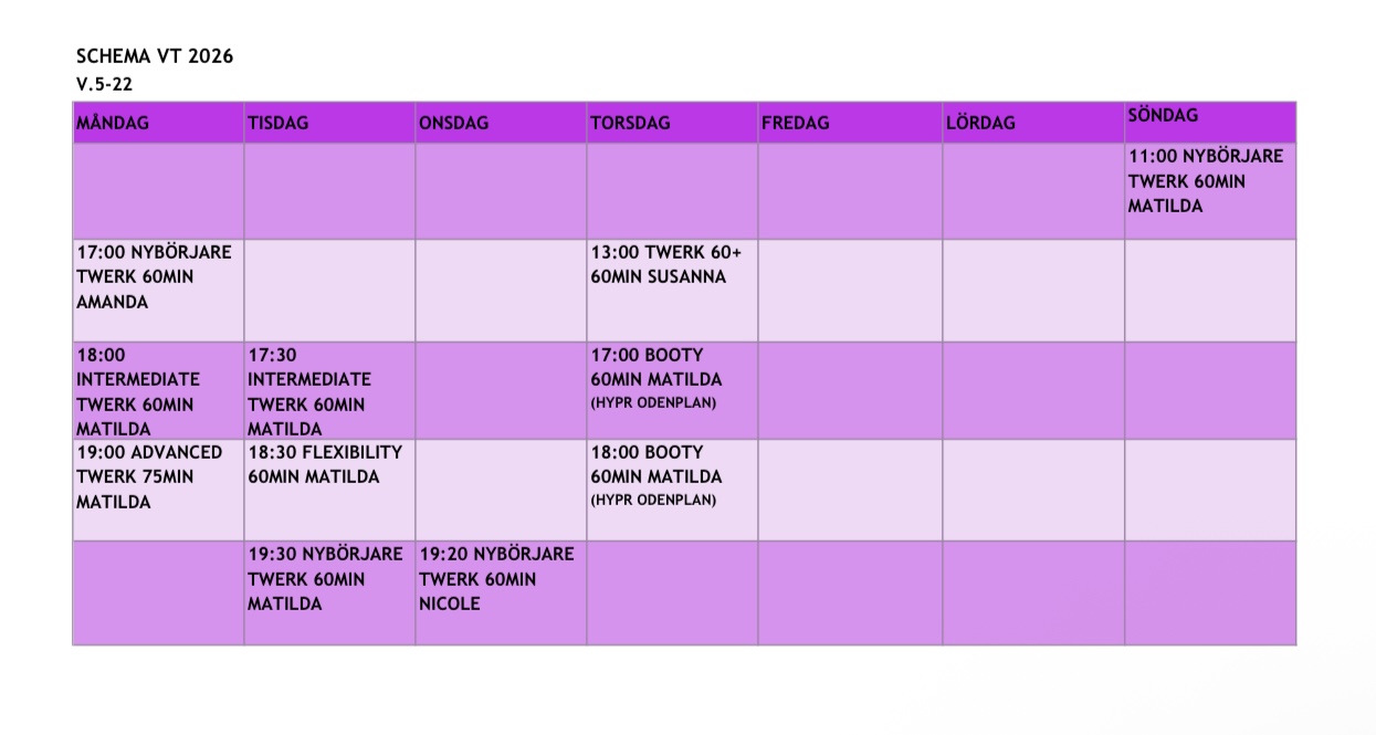 TWERK (ALLA NIVÅER) OCH FLEXIBILITY KÖRS PÅ KÜHLERS DANSSKOLA TEGNÉRLUNDEN 6, RÅDMANSGATAN OCH BOOTY PÅ HYPR, HÄLSINGEGATAN 9, ODENPLAN